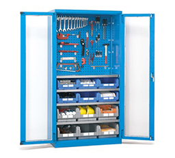 Cabinets comes with hinged doors, sliding doors, or roller shutter doors ,with a wide range of accessories such as: shelves, drawers, dividers, containers, boxes, removable frames and worktops.